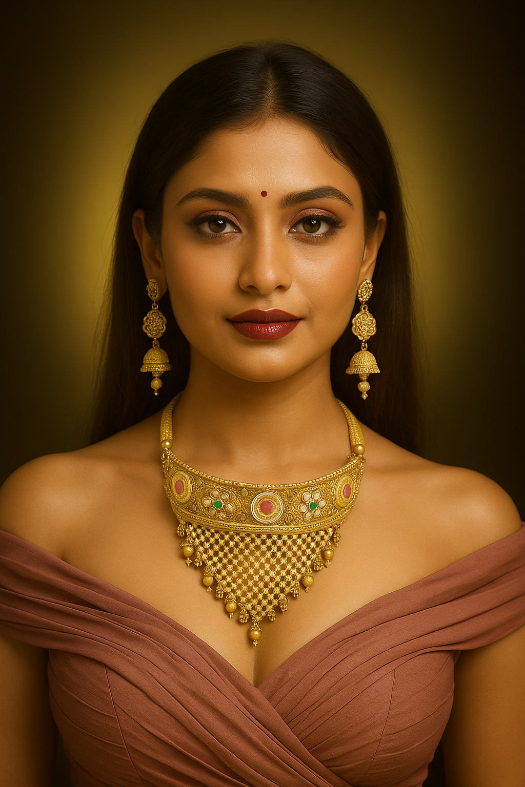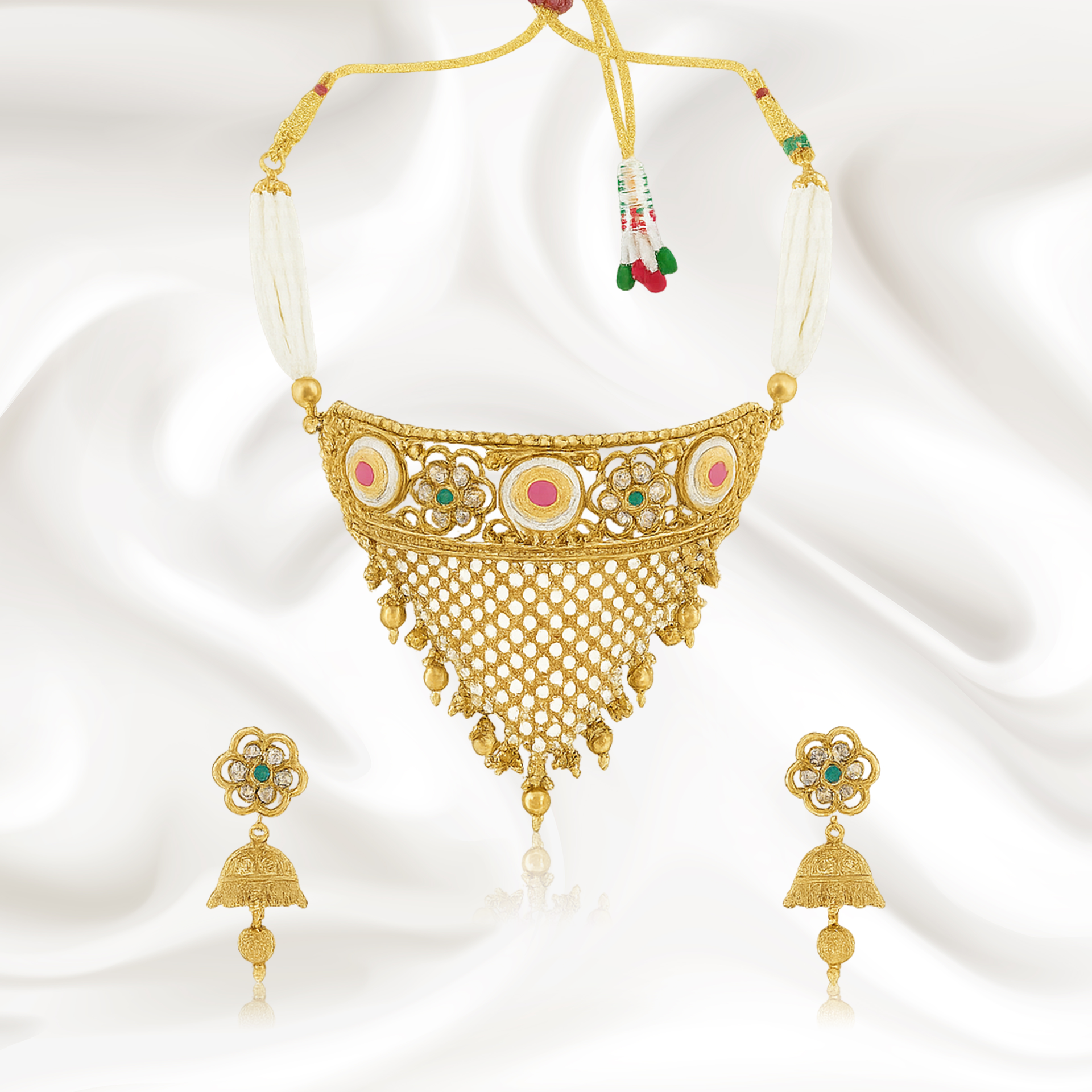 Step into a world of majestic elegance with the Royal MG Chokers, a statement piece that embodies grandeur and timeless charm. Intricately designed with premium American diamonds and fine detailing, this choker set reflects true regal beauty, making it the perfect choice for those who love to shine with confidence.